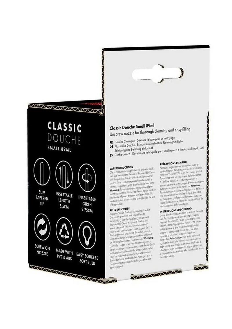Die Prowler Bulb Douche ist eine klassische Intimdusche. Sie besteht aus einem PVC-Ballon und einer Düse aus ABS-Kunststoff, die sich leicht reinigen, befüllen und anwenden lässt.