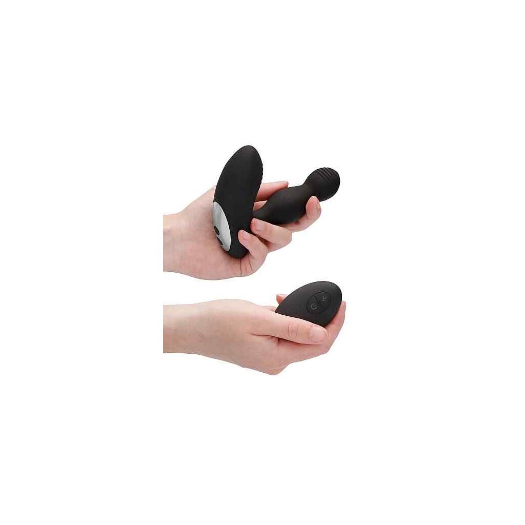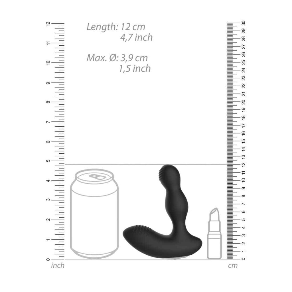 Der Vibrating & E-Stimulation Prostata Massager aus der Electroshock Serie by Shots ist ein aus Silikon hergesteller und wiederaufladbarer Plug / P-Punkt-Massager mit getrennt voneinander einstellbaren Funktion. Am unteren Ende des Toys befinden sich die 2 Bedienknöpfe. Hier können Sie komfortabel zwischen 10 unterschiedlichen Vibrationsmodi und 5 verschiedenen Elektro-Stimulationen auswählen. Der Einstellknopf für die Vibrationen leuchtet dabei blau, der für die E-Stim-Funktionen rot. Selbstverständlich können Sie die Funktionen auch über die dazugehörige Funkfernbedienung einstellen.