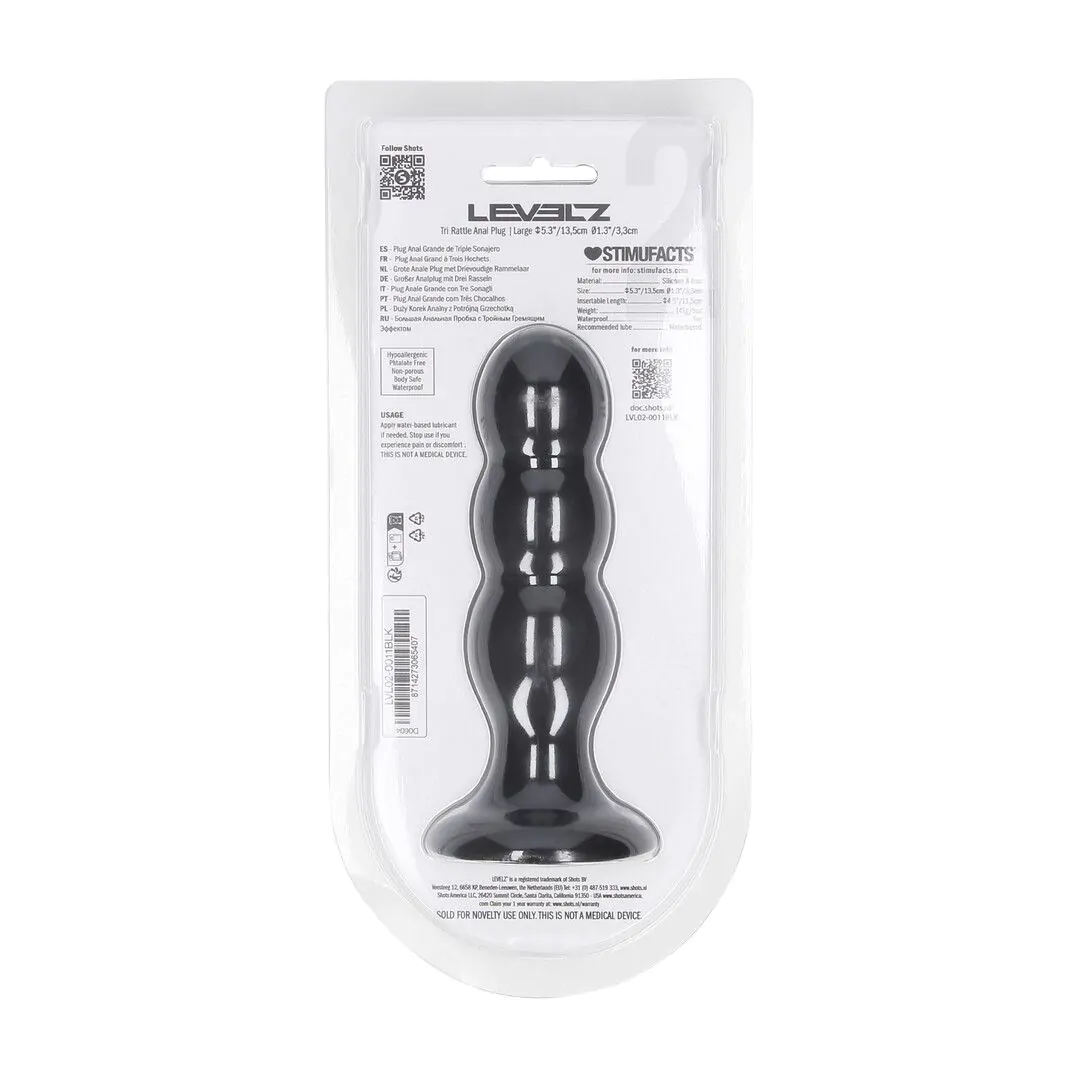 Machen Sie sich bereit für dynamische Stimulation mit dem Triple-Rassel-Plug aus der LEVELZ-Kollektion. Dieses Level-2-Design besteht aus hochwertigem Silikon und verfügt über drei glatte Kugeln mit Innenkugeln, die auf jede Bewegung reagieren. Jede Kugel-Kontur des Plugs stimuliert beim Einführen, während die Innenkugeln bei jeder Bewegung für eine verführerische, kinetische Stimulation sorgt. Der flexible Hals bewegt sich natürlich mit dem Körper und die ausgestellte Basis sorgt für sicheren und bequemen Tragekomfort.