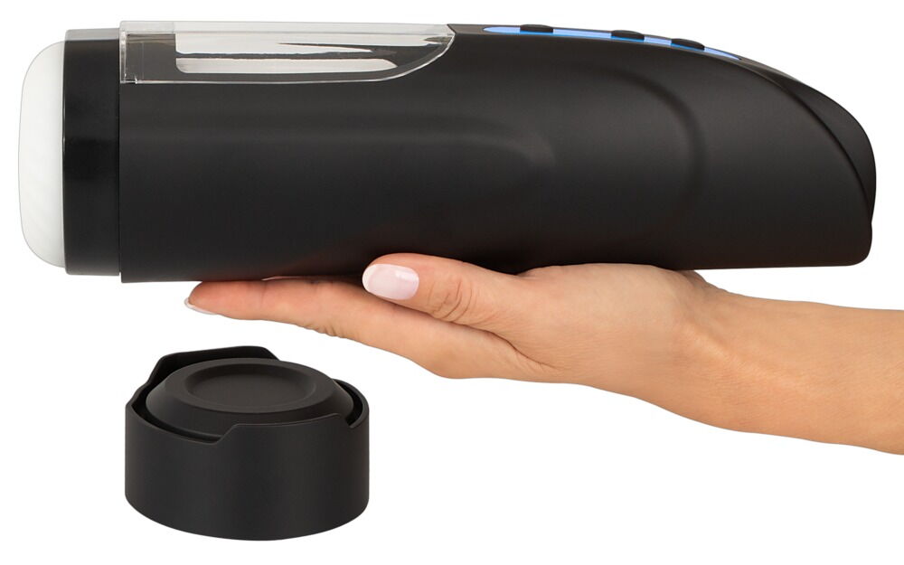 Die Stroking-Funktion ist mit der Rotation kombiniert und in 10 Modi und 2 Geschwindigkeiten steuerbar – ganz bequem per Knopfdruck direkt am handlichen Toy. Für freihändiges Vergnügen ist der beiliegende Saugfuß schnell und einfach am Masturbator montiert.