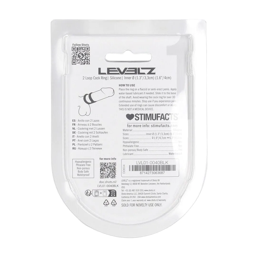 Doppelter Halt, doppelte Kontrolle. Dieser Penisring mit zwei Schlaufen aus der LEVELZ-Kollektion gleitet über den Schaft und sorgt für zusätzlichen Druck und präzise Platzierung.
