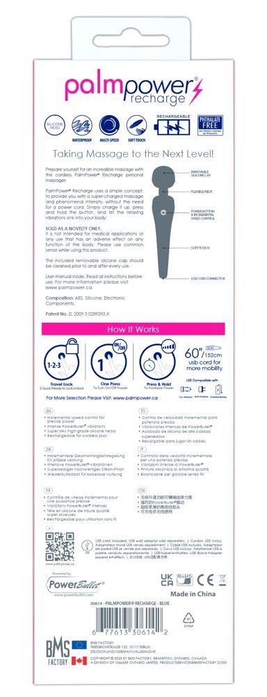 Der wiederaufladbarer Massagestab Recharge von Palmpower ist sehr handlich und mit einem flexiblen Massagekopf ausgestattet.